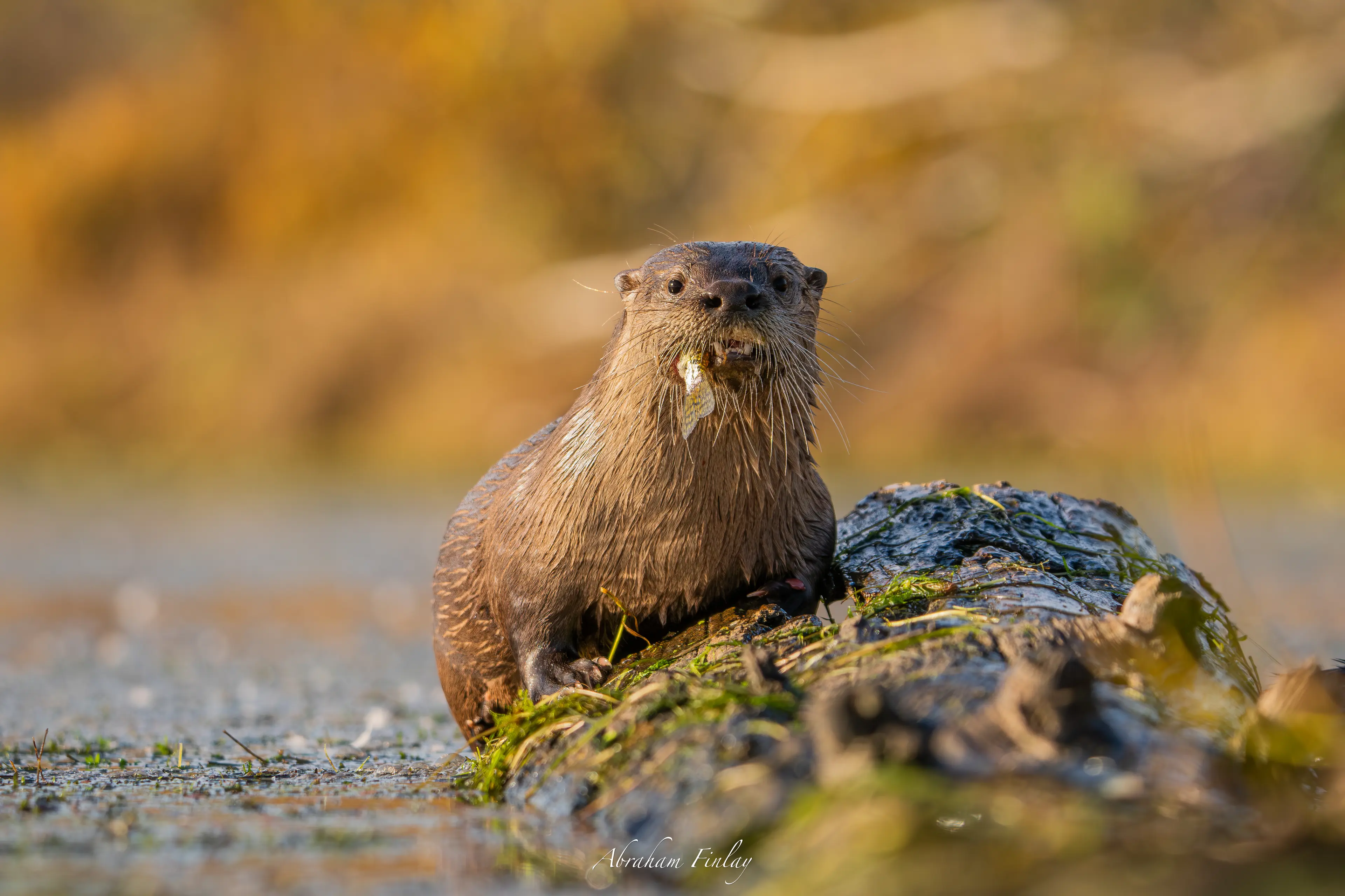 It was such a beautiful day yesterday so some of my family and I went to Fords Pond! We started walking around the left side of the pond and this nice lady saw me taking photos and told me that the River Otters were on the other side of the pond right then. I thanked her and walked back around the pond the way we had come. I went to the northeast corner of the pond where there were several logs at the pond's edge that the otters frequent while hunting. When I got there I didn't see any sign of the otters but a Mink was sitting on one of the logs. I began photographing the Mink and when it went underwater I seized my chance to sneak down to the water and position myself on one of the logs. The Mink came back up and I watched it for a minute before I started hearing splashing and crunching noises to my left. I looked over and saw four River Otters swimming towards me diving underwater and repeatedly coming up with fish. I sat still and quiet hoping the Otters would come over to where I was. After a minute they made it over and one of the Otters climbed onto the log I was sitting on with a fish in its mouth and began to eat it. It was an awe-inspiring moment! For 45 minutes while I sat there the Otters just swam around me catching fish and coming up onto the log to eat all the time seeming to be mildly curious of me but not scared. This was was of the most amazing wildlife encounters I have ever had! It was incredible watching the otters hunt as a team chasing a school of fish towards the bank, and then after catching a fish coming back up onto the log I was sitting on!